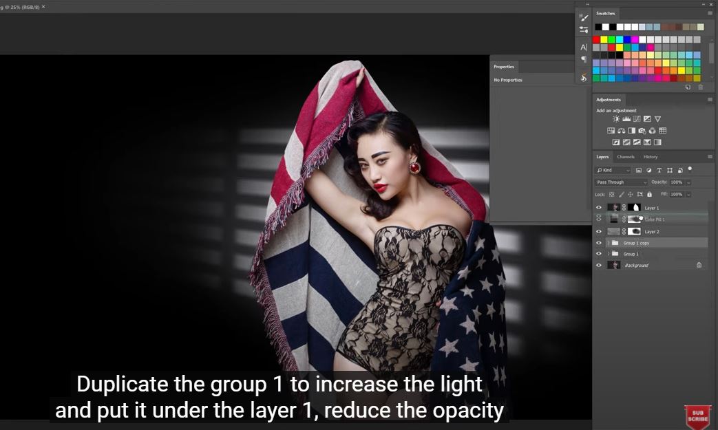 (15). Duplicate one more time, and this time we will put in on top of layers, this will create the shadow of window light on the subject and make the photo looks natural. Place all into group and enjoy! If you find this tutorial is helpful, please hit like and subscribe buttons and you can enjoy our tutorials about Photoshop