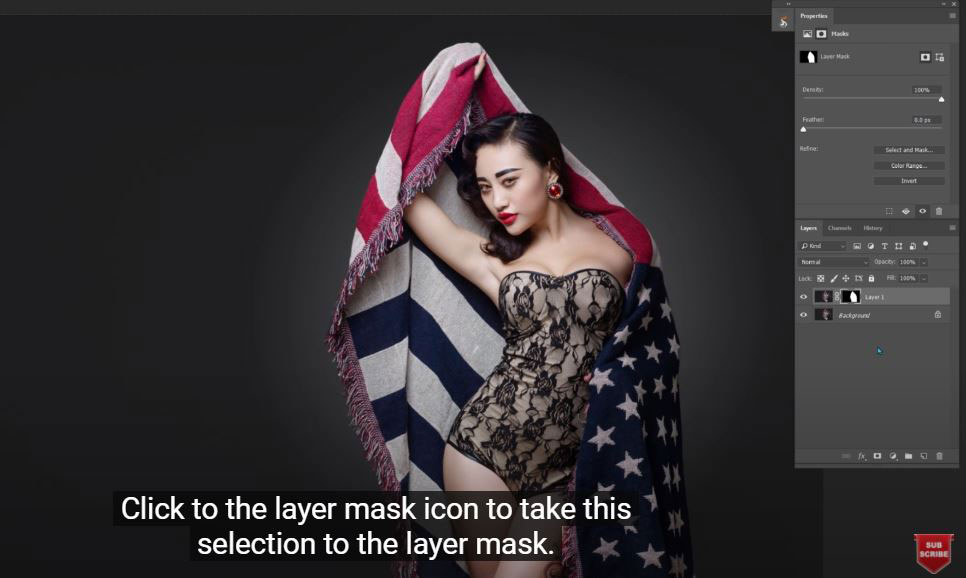 (3). Click to the layer mask icon to take this selection to the layer mask. Next, create a new layer above the background layer. Simply, just choose the background layer first and click to new layer icon so that the new layer will appear above the background layer.
