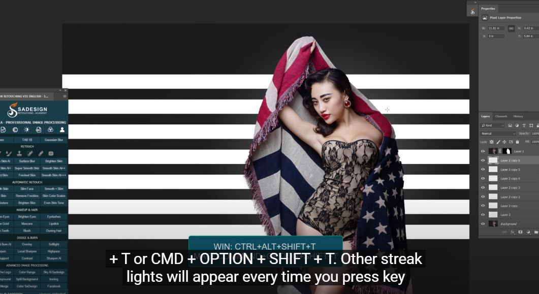 (5).Now, Photoshop already remembers of your action so you just need to press CTRL + ALT + SHIFT + T or CMD + OPTION + SHIFT + T. Other streak lights will appear every time you press key combination.