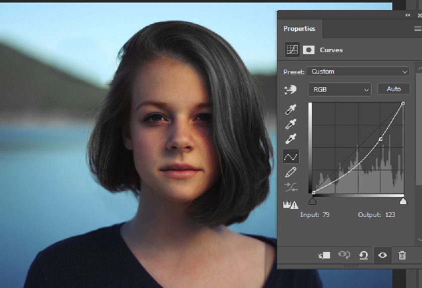 Now use Curves adjustment to darken the image. Use the settings below to darken the image.