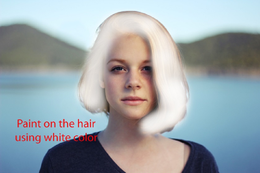 Create a new layer and name it "white". Use a soft brush to paint white on the hair like I did below. You need to be subtle but don't worry if you overdo it because you can fix it later