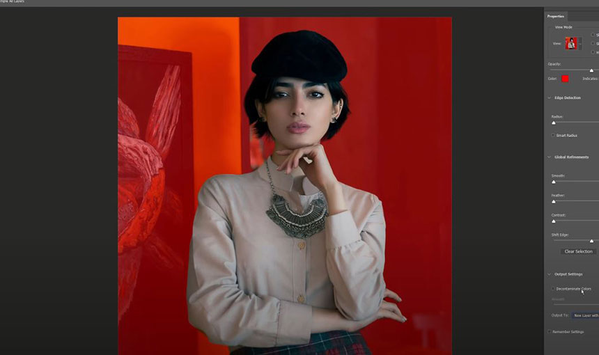 In output, select “New layer with Layer Mask” Check to “Decontaminate colors”, decrease amount to 59% Turn off background layer, In subject mask, use brush tool, opacity 100%, black in foreground color. Remove these black areas. To increase or decrease brush size, use bracket [ ].