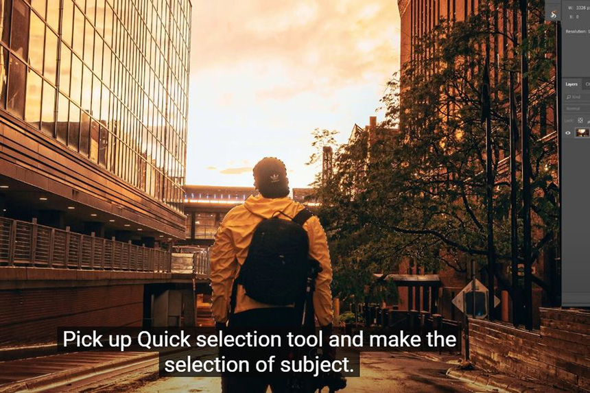 As usual, cut the subject out of the background. Pick up Quick selection tool and make the selection of subject. Hold Shift to add more selection or remove the selection with ALT.