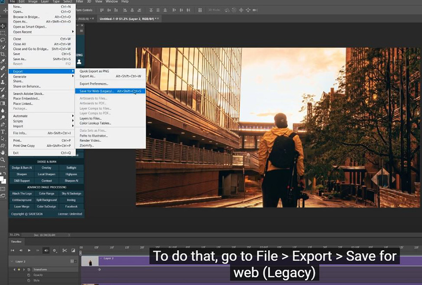 However, you can only enjoy this effect on your PTS. If you want to share this to your friends or upload in social media. You have to export it to gif file. To do that, go to File > Export > Save for web (Legacy)