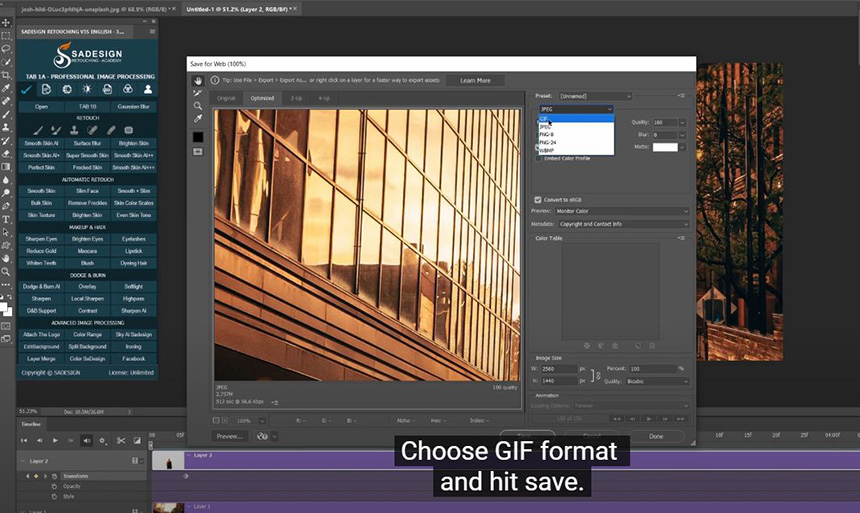 Choose GIF format and hit save. put the name and destination. Then Save it.