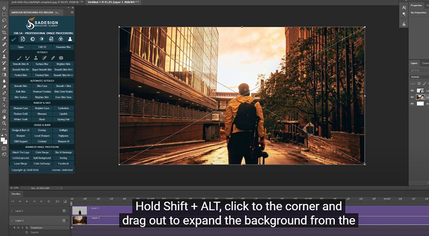 Hold Shift + ALT, click to the corner and drag out to expand the background from the center. This action is for parallax 3D creation. Then Enter