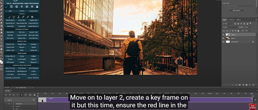 Move on to layer 2, create a key frame on it but this time, ensure the red line in the end of the line. Expand the size of the subject a bit, just like the subject is moving when we start the timeline. See how cool is it?