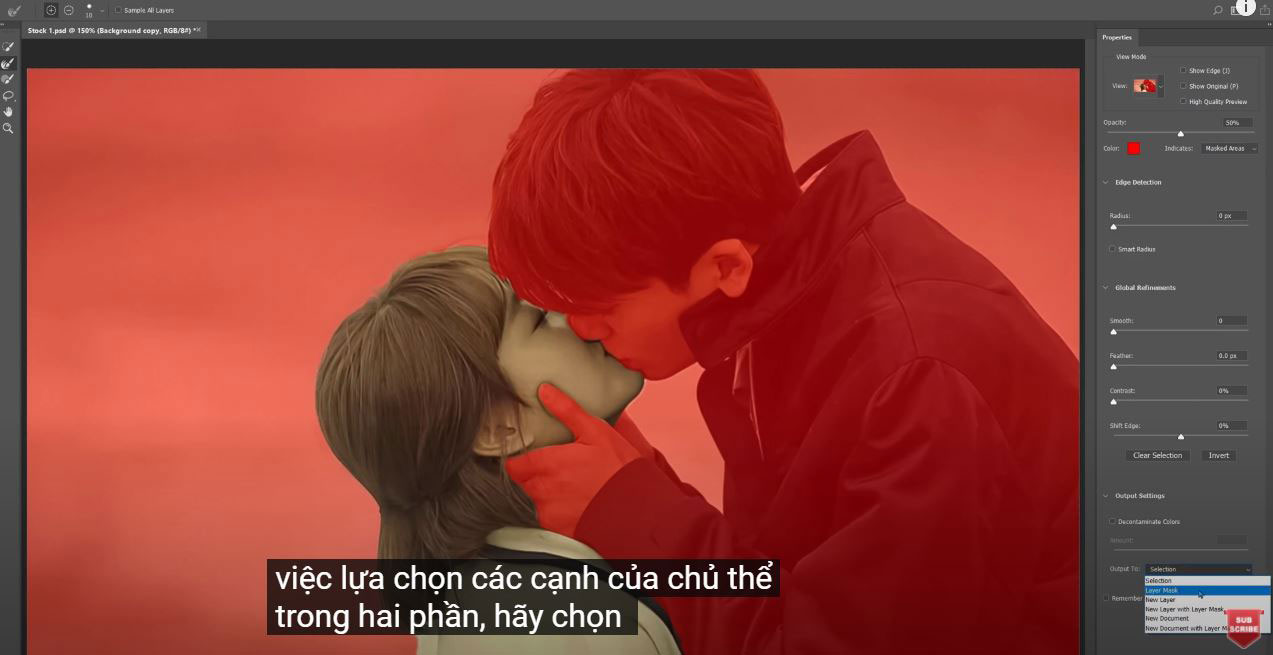 Then go to Select > Select and Mask > use the Refine Edge Brush tool to improve the selection of the subject's edges.