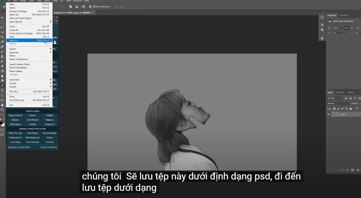 We will save this file in PSD format, go to File > Save as > name and select PSD format, then Save