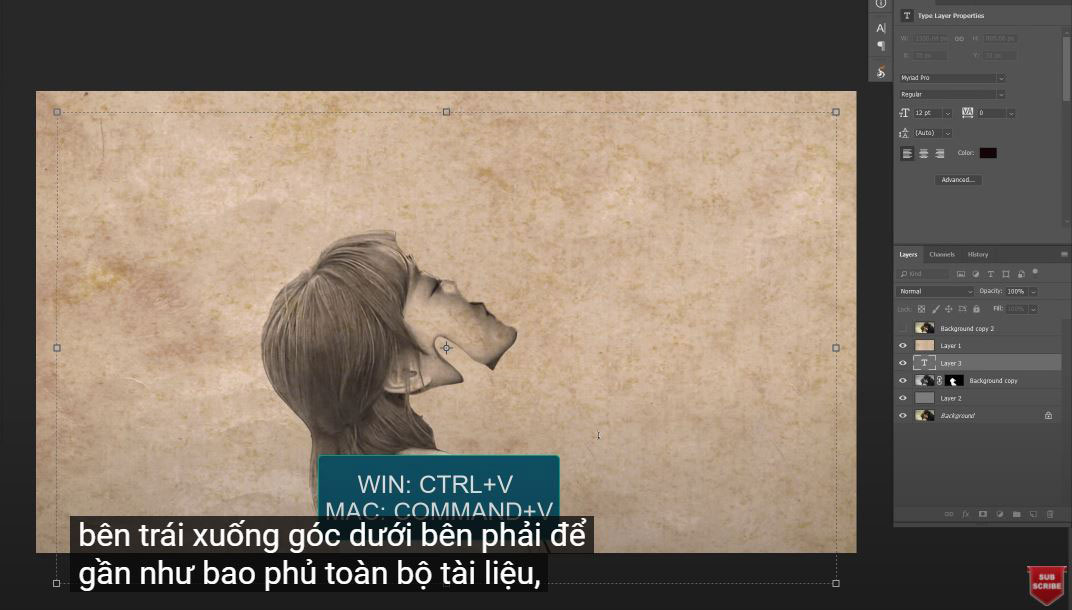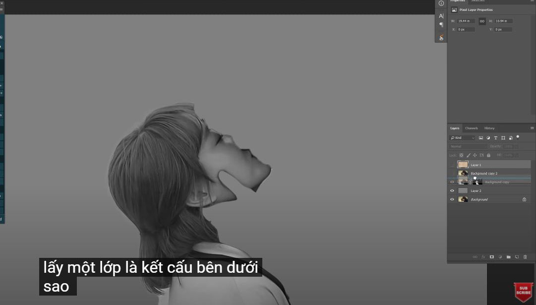Take layer 1 as the texture below “background copy 2”, turn it on and change the blend mode from normal to overlay.