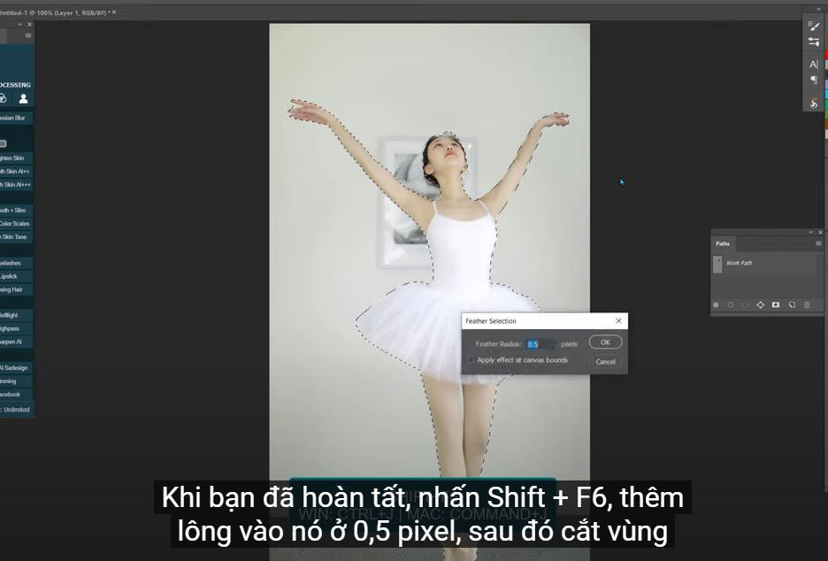 (10). Once you're done, press Shift + F6, add feathers to it at 0.5 pixels, then clip the selection to a new layer using CTRL or CMD + J.
