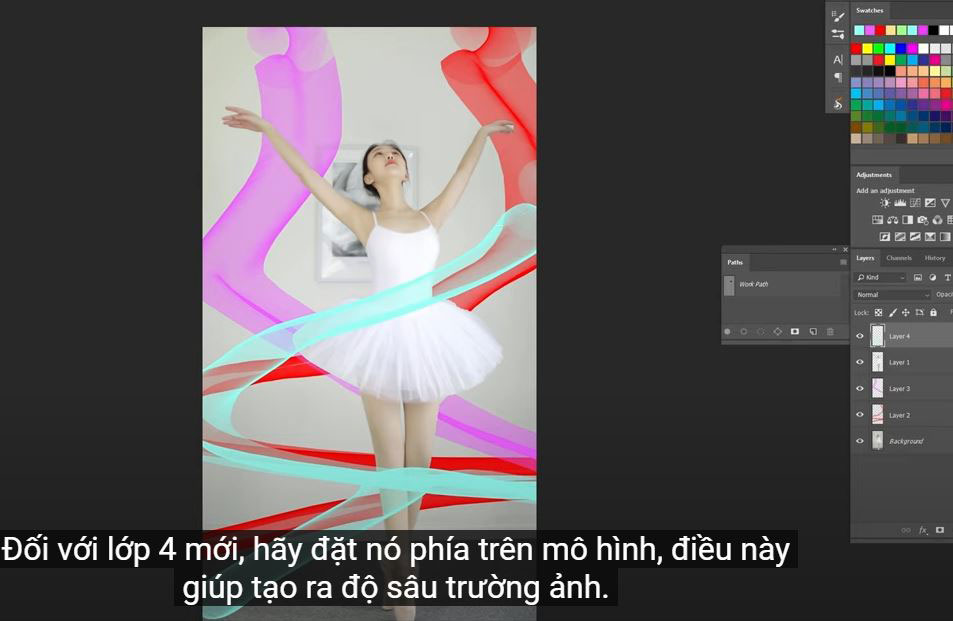 For the new layer 4, place it above the model, this helps to create depth of field.