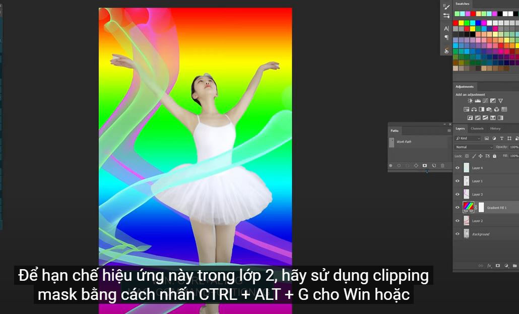 (13). Now we are going to convert the red line into multiple colors. Click the adjustment icon, select the gradient, print the preset, select “Spectrum” and ok. To limit this effect to layer 2, use clipping mask by pressing CTRL + ALT + G for Win or CMD + OPTION + G for MAC. Here you are.