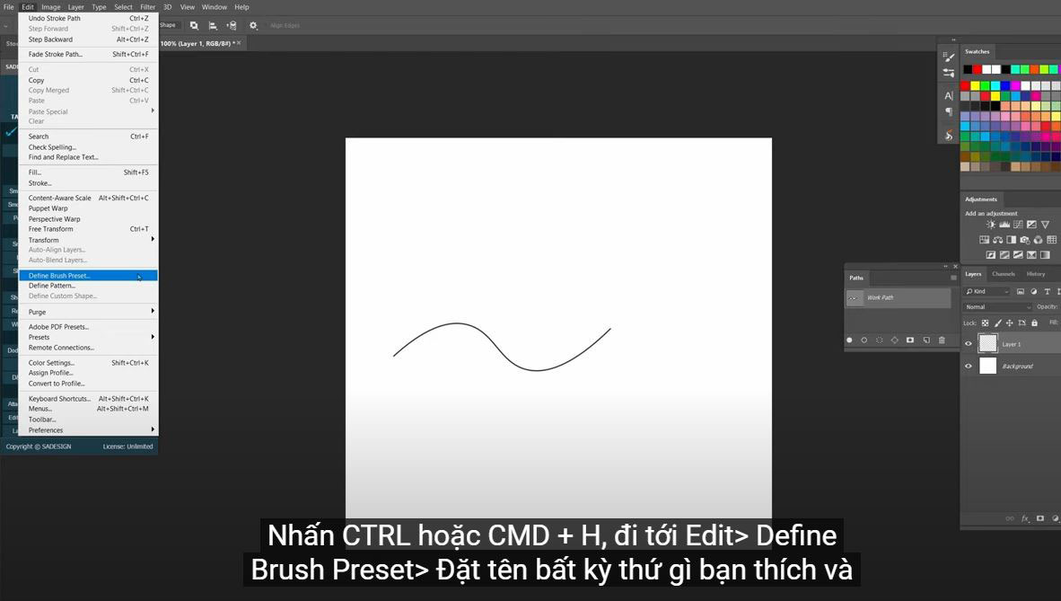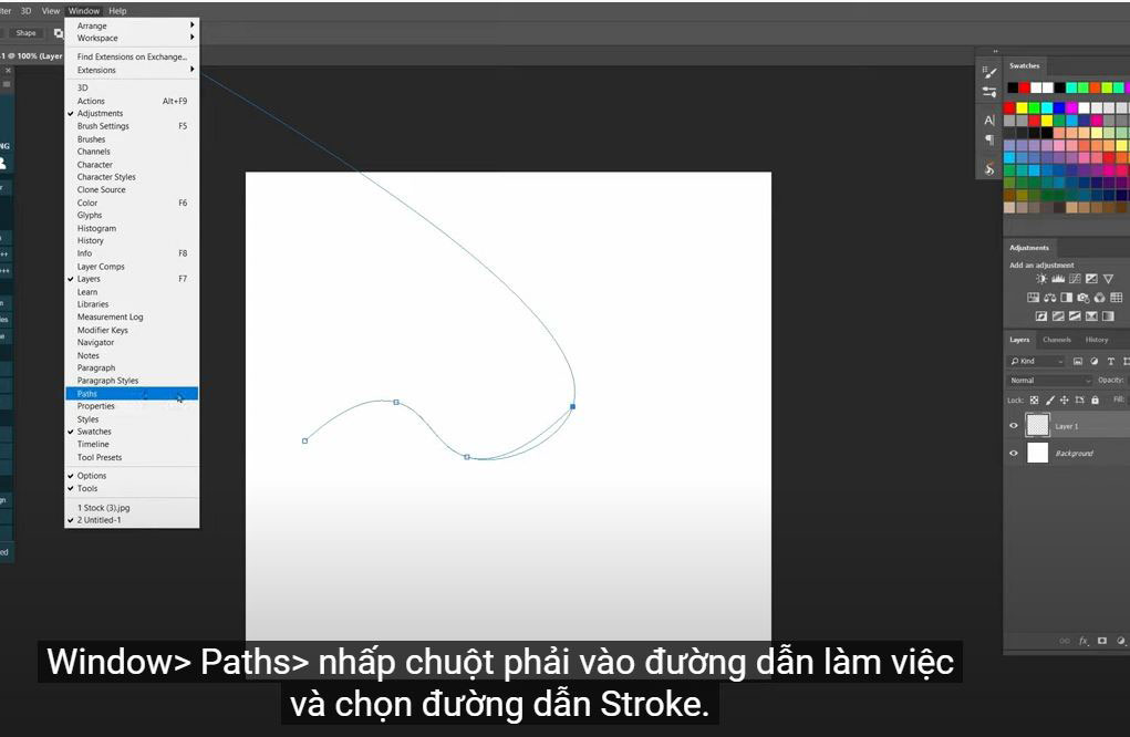 (4). Window > Paths > right click on the working path and select the Stroke path. Drop down the menu in the toolbox and select “brushes”, then confirm.
