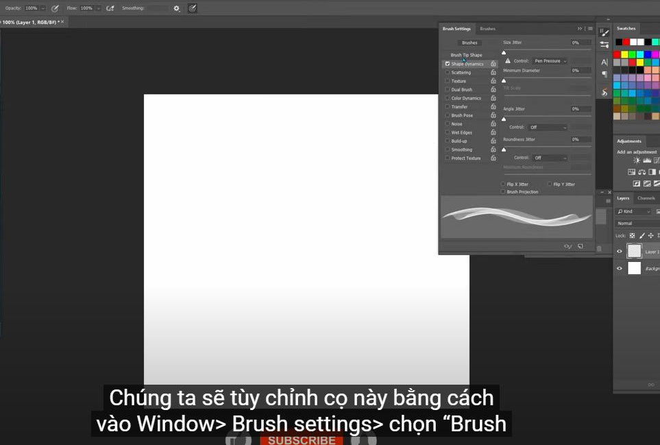 (6). Now we have created the brush curve. We will customize this brush by going to Window > Brush Settings > select “Brush Head Shape” > set Spacing to Minimum