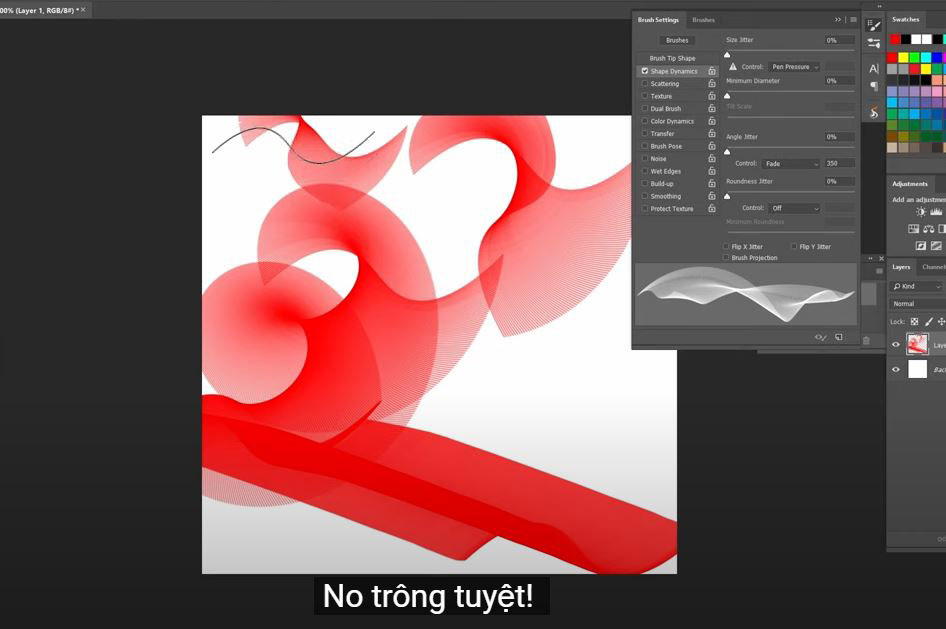 Using the Brush tool, with the brush we just created, let's try the red color first. Adjust the flow to 25% and it's time to create your own unique brush effect.