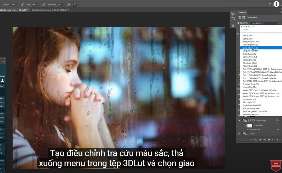 (9). Create a color lookup adjustment, drop down the menu in the 3DLut file, and select the look you want to add a preset color to. "Candlelight.cube" is fine for me. Adjust the opacity to 63% so that the color is not too strong.