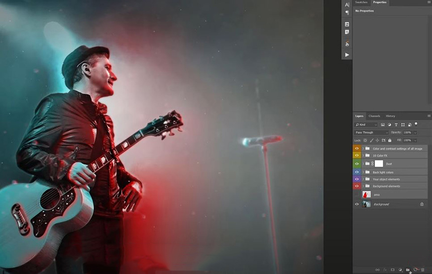 The processing will consume a bit of time since it takes lots of steps to create this effect. There you go! I named each folder so you can check one by one. Then, adjust the opacity if needed. Put all of them into group.