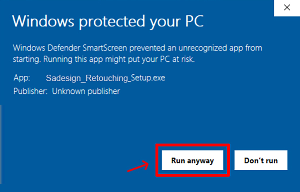 1.4 Select Run anyway to install