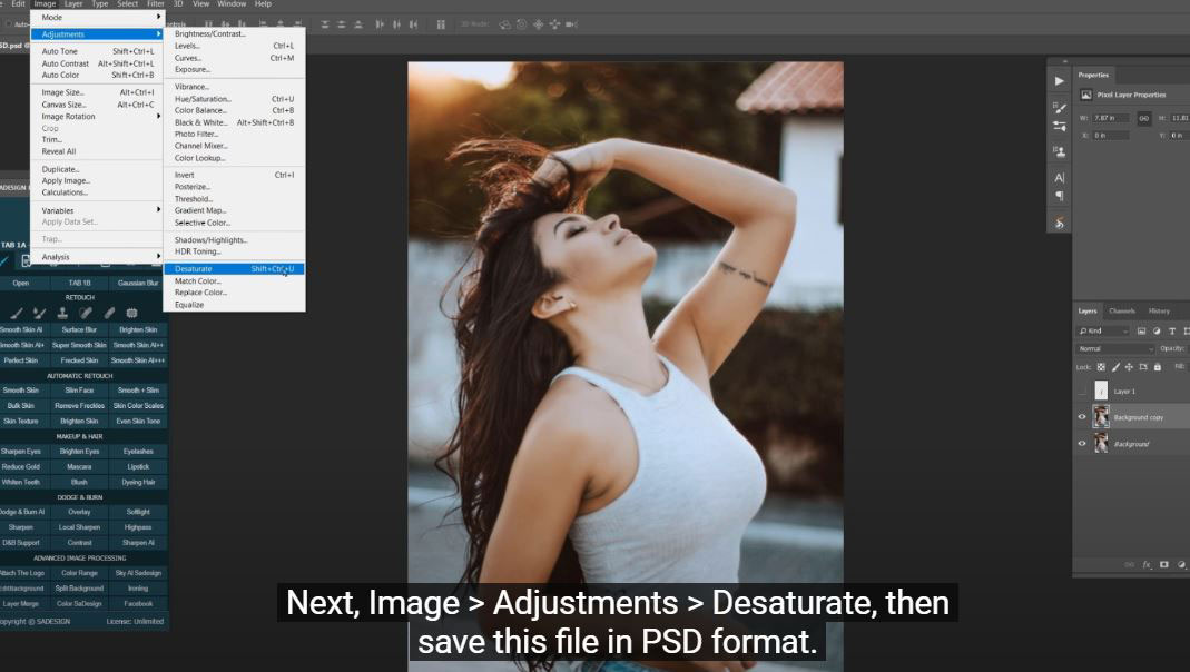 (2). Next, Image > Adjustments > Desaturate, then save this file in PSD format. You can delete this layer from now since we don’t need to use it anymore.