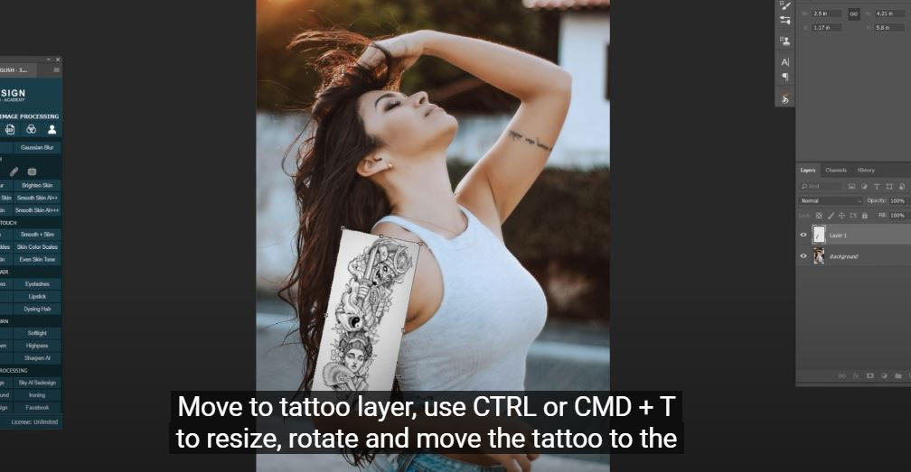 Hi there, in this tutorial I’ll share with you how to add a realistic tattoo on your body in Photoshop. Let’s jump right into it!