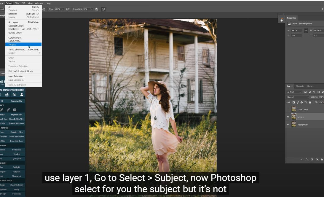 (1). The key point for blurring the background, you have to separate the subject and the background. First, duplicate the background 2 times with CTRL or CMD + J. Turn of layer 1 copy and use layer 1, Go to Select > Subject, now Photoshop select for you the subject but it’s not good enough in this case so you have to remove the unwanted selection and adding the subject if it’s not selected yet. To do that, use “Quick selection tool”, hold SHIFT to add the selection of subject. By contrast, hold ALT to remove the select of the background. For some minor's selection, use pen tool (P shortcut), click carefully to the selection you want to add or remove, when the selection is selected, hold CTRL + SHIFT + Enter to add the selection. Or CTRL + ALT + Enter to remove the selection.