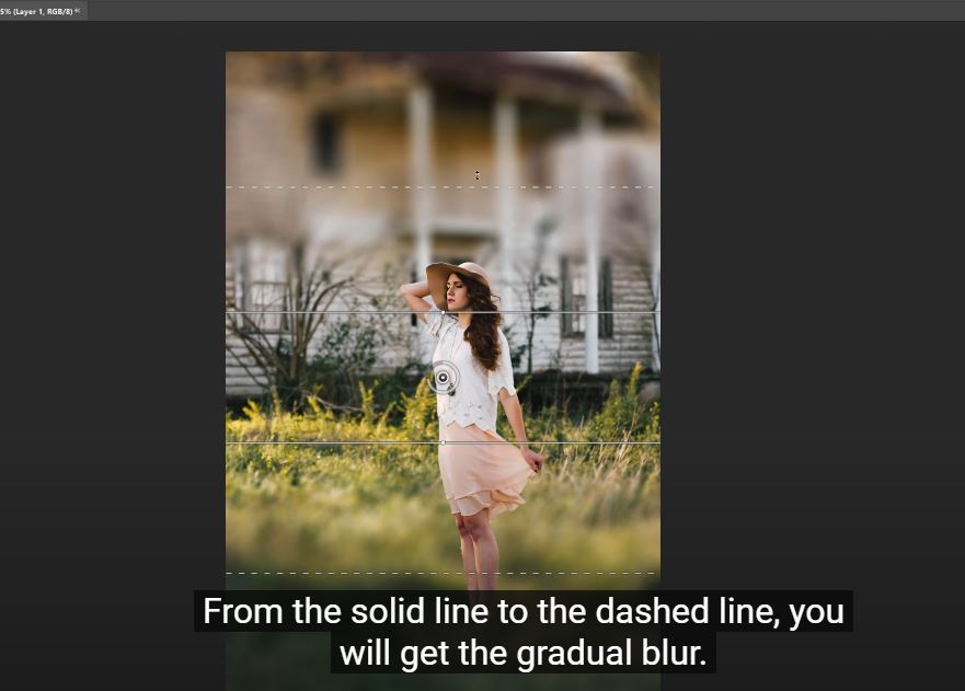 (6). From the solid line to the dashed line, you will get the gradual blur. When you pass the dashed lines, it will be full blur with the pixel that you set in the circle or on the right-hand side. So you can control to create the blur effect which is the depth of field with these lines.