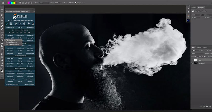 Let’s remove the color on these areas as well. This is before and after using gradient map and layer mask. That’s it! Let’s move to another example for you. I’ll show another way to color the smoke.