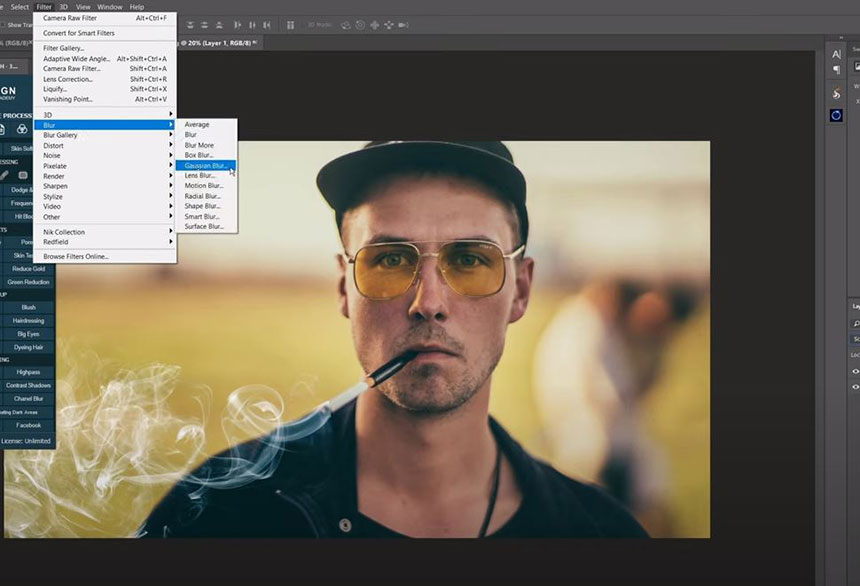 Change blend mode from normal to screen to remove the black background color Head to Filter > Blur > Gaussian Blur > blur the smoke with 5 pixels Pick up Eraser tool to remove just a bit at the start point of the smoke to make it realistic.