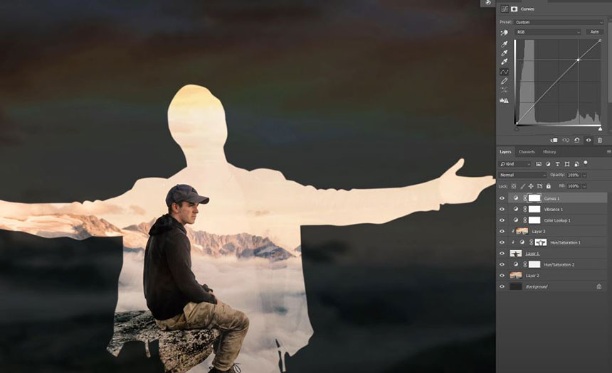Create vibrance adjustment layer, increase vibrance to 37 to enhance colors Add contrast with Curves adjustment layer, increase highlight and decrease shadow to create S curve