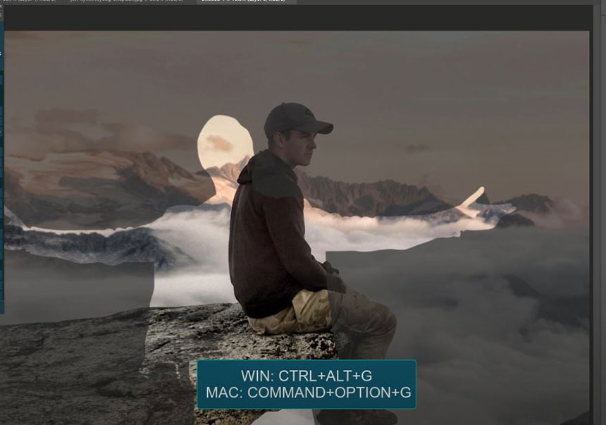Use move tool and drag it to our project Take layer 2 below layer 1, decrease opacity to 30% In Layer 3, press CTRL+ALT+G or CMD+OPTION+G to clipping mask it