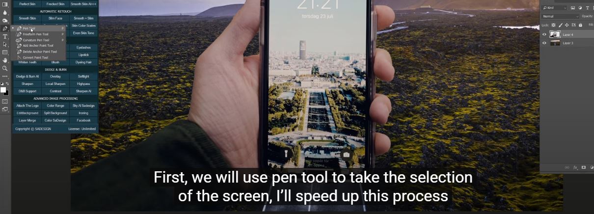 First, we will use pen tool to take the selection of the screen, I’ll speed up this process to save your time.