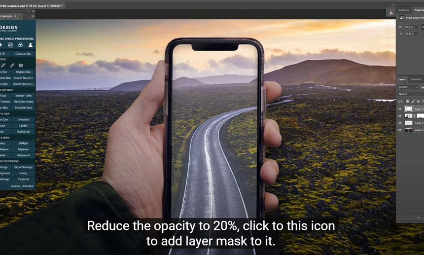 Hi there, today I’ll show you how to create an incredible manipulation effect right in Photoshop. Right here, I have a photo of phone and a landscape with road in the middle.