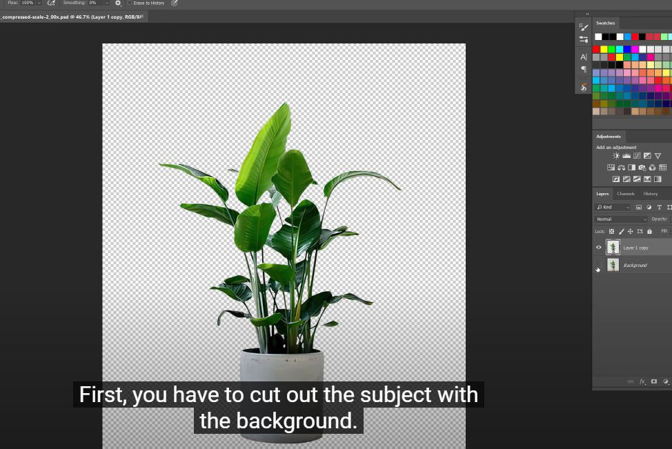 (1). First, you have to cut out the subject with the background. Here I did it, the layer 1 copy is the subject that I removed from the background.