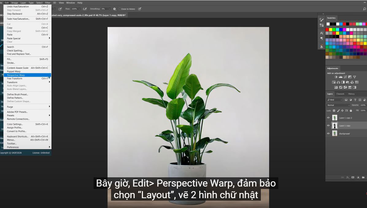 (3). Now, Edit > Perspective Warp, select “Layout”, draw 2 rectangles like this to create perspective