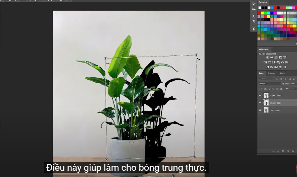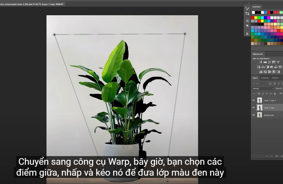 (4).Switch to the Warp tool, now select the midpoints, click and drag it to bring this black layer to hit the wall like a shadow. Just adjust these points until you are satisfied with the results.