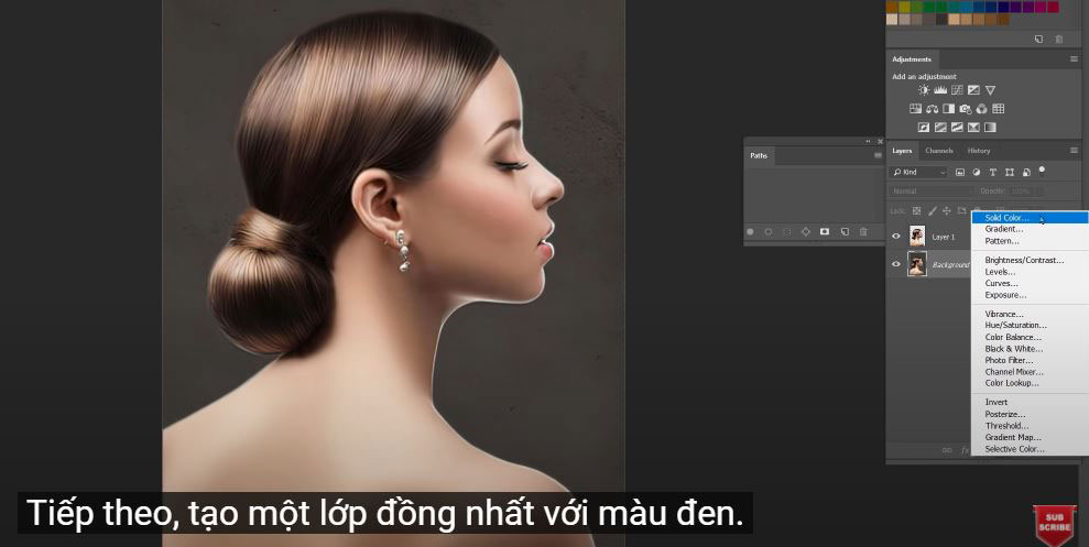 (1).Here I have this beautiful image, we are going to cut the subject out of the background. Going to Select > Theme > Photoshop did a great job of making the selection. However, we had to make a little modification on her hair.