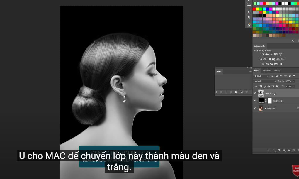 (4). Remove all the color of the object by pressing CTRL + SHIFT + U for Win or CMD + SHIFT + U for MAC to convert the layer to black and white.