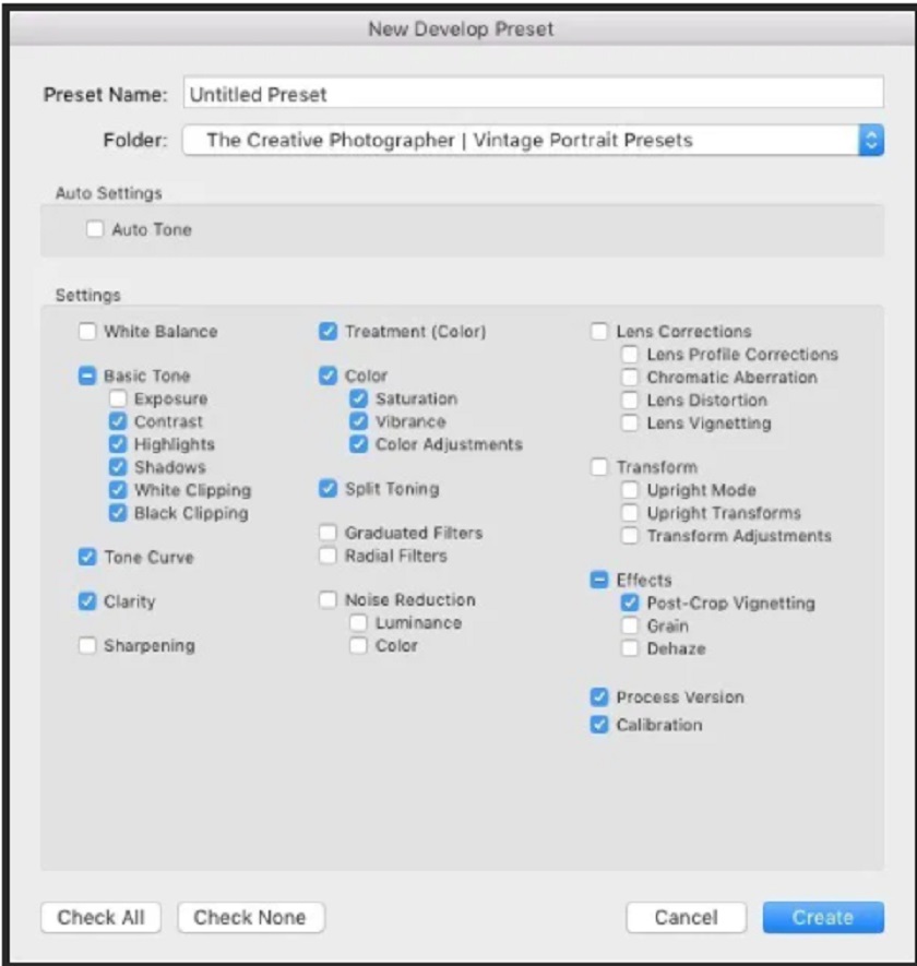 Most cameras have less than ten color profiles. This doesn't seem like much, especially compared to the variety of films made available to photographers 20 years ago. But you can create your own custom color profiles using Lightroom. The way to do this is to create a Develop Preset. Let's say you like your camera's Portrait color profile but want less saturated colors. In this case, you can create portraits in Lightroom, using Vibrance or Saturation settings to reduce the intensity of the colors. You can also adjust the saturation setting in the HSL / Color / B&W panel. Then create a new Develop Preset to save those settings and call it Portrait Preset.