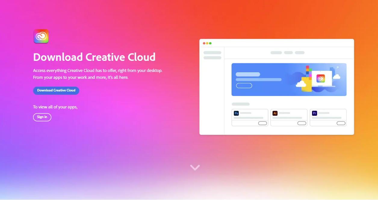 Visit https://creativecloud.adobe.com/apps/download/creative-cloud and click Download Creative Cloud to download the software