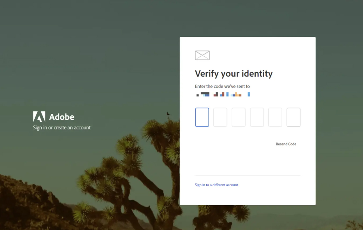 After successfully logging in, Adobe will ask you to add a second email. Please enter your email to get a code sent to your email, used to log in or change your password later.