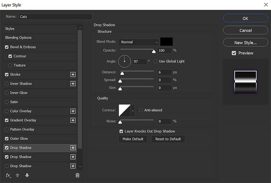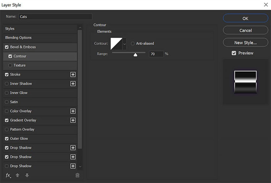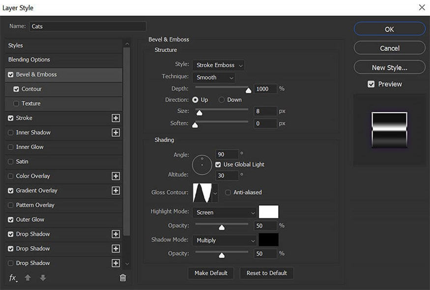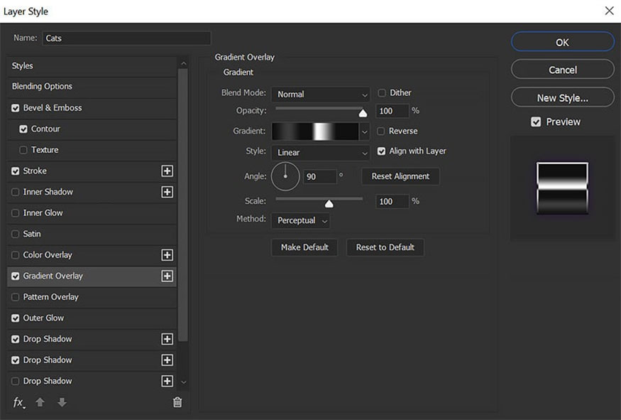 Add chrome effect to "Cats", switch to gallery to see settings as follows: