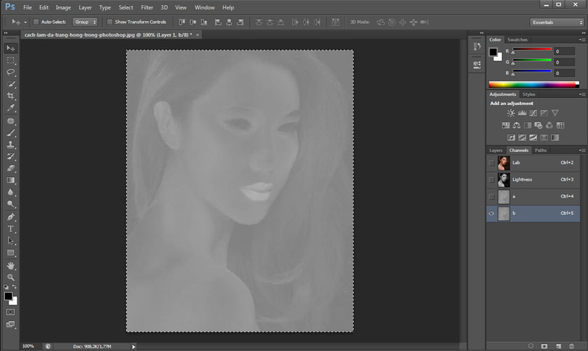 Step 3: Go to Window and click Channels to open the Channels. At this point, the LAB color system will separate the image into 3 channels: