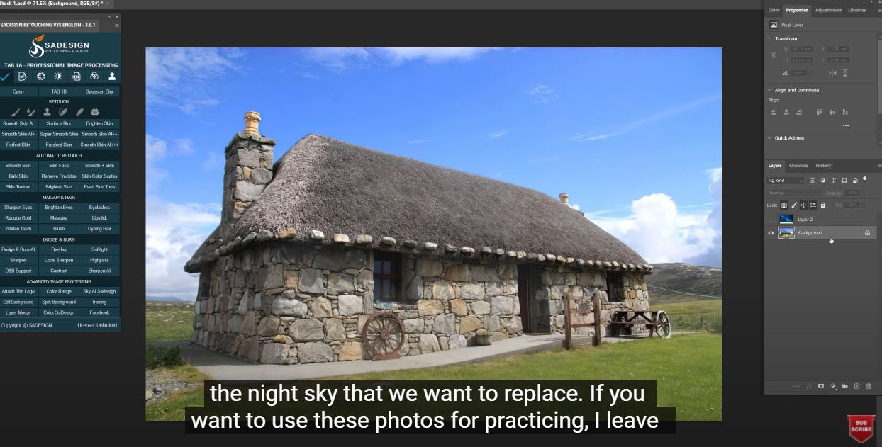 Here, there are two layers, first one is background layer and the layer 2 which is the night sky that we want to replace. If you want to use these photos for practicing, I leave the link to download in the description.