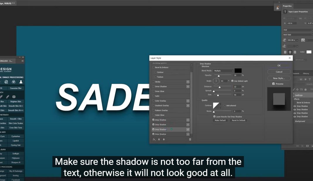 This helps to create layers of drop shadow, that’s why you will see it will look more and more realistic after you adding another drop shadow. Make sure the shadow is not too far from the text, otherwise it will not look good at all.