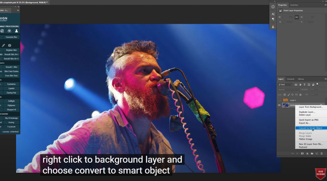 Turn off texture layer, right click to background layer and choose “Convert to smart object”