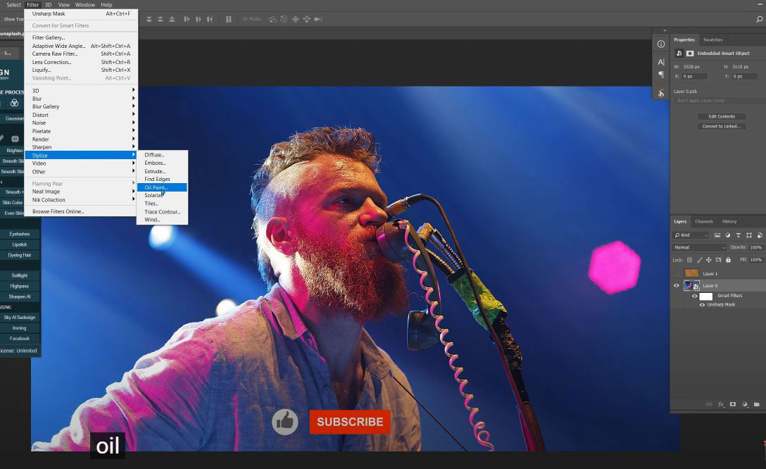 Filter > Stylize > Oil paint> following the values as below: