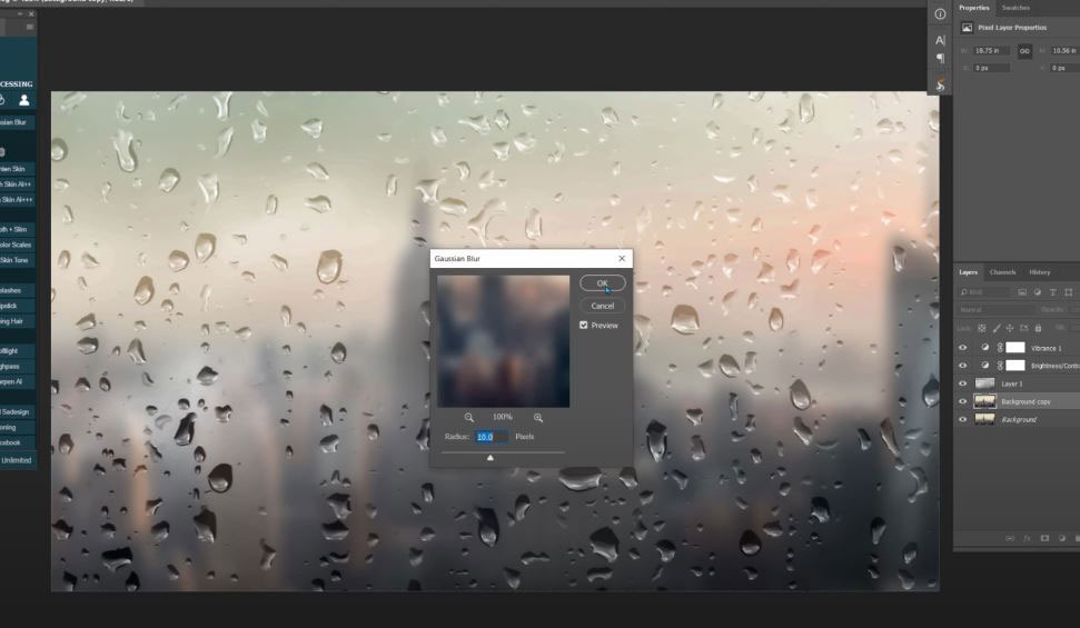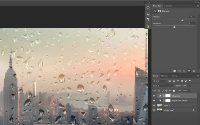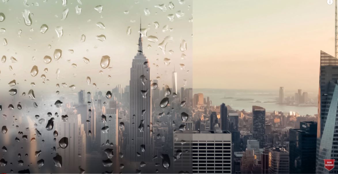 Right here, I have an urban background with lots of buildings and skyscrapers. And grade 1 is a mirror with a lot of rain on it.