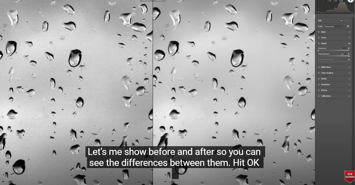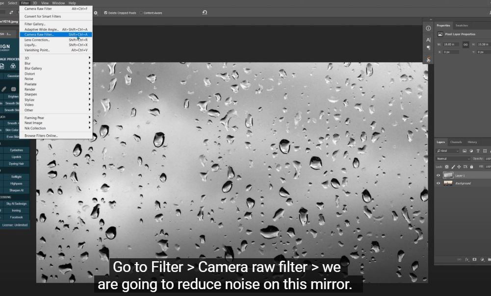 (2). Go to Filters > Camera Coarse Filter > we will reduce the noise on this mirror. In the details tab, increase “noise reduction” until all noise disappears.
