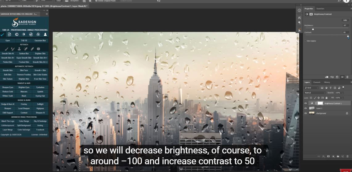 Click on the adjustment icon and select “Brightness/Contrast”, it is too bright so of course we will reduce the brightness to about -100 and increase the contrast to 50